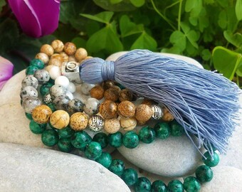 108 Mala Beads Tassel, Jasper Tassel Necklace, Bohemian Tassel Necklace, Boho Jewelry, Mala Beads, Long Layering Necklace, White Howlite