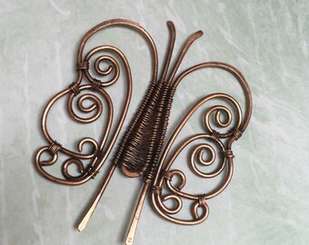 handcrafted copper wirework butterfly necklace, wire weave pendant with leather cord, birthday present, insect jewellery, just for you