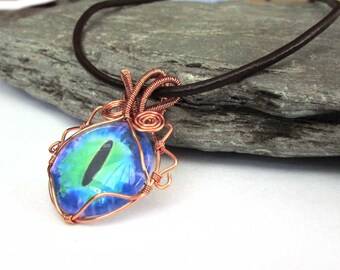 copper wirework evil eye pendant, made just for her, unique necklace for women, blue and green jewelry, curiosities and oddities, chakra