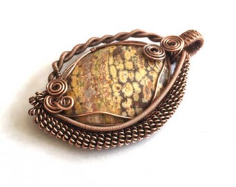unusual pendant, Jasper gem, wire wrapped necklace, made just for her, grandmother of the bride, handcrafted unique jewelry, unusual present