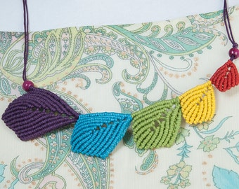 Macramé necklace with natural wooden beads and natural waxed cotton cord knotted with a macramé technique.