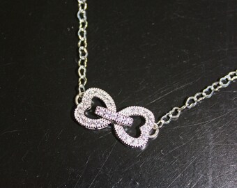 Double Heart Cubic Zirconia Sterling Silver Clasp Petite Heart Link Sterling Silver Chain Necklace 15 Inches