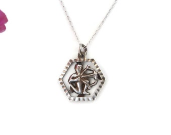 Vintage Sagittarius Necklace, Sterling Silver Zodiac Necklace, Horoscope Necklace, Archer Star Signs Astrology, November December Birthday