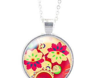 Girly yellow red necklace flower - yellow red necklace handmade in France by Milacrea