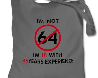 I'm Not 64,I'm 18 With 46Years Experience-Choice Of 6 Colours,Tote Bag,Canvas Tote Bag,Shopping Bag,64th Birthday Gift,Grocery Tote Bag