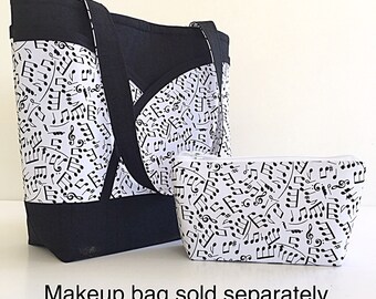 handbag, tote bag with pockets, fabric handbags, pocketbook, shoulder bag, musical notes , womens handbag
