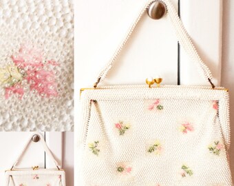 Vintage handbag, Vintage 60s handbag, Vintage white handbag, Mad Men handbag, beaded handbag, formal handbag