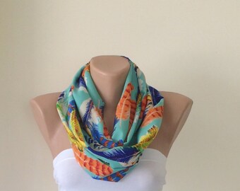 Feather Circle Scarf, Cotton Loop Scarf, Infinity Scarf, Tropical Print Scarf, Boho Colorful Scarf, Women Scarf, Designscope
