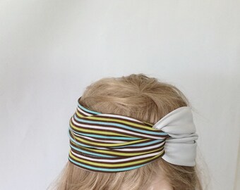 Turban Headband, Boho Twist Hairband, Striped Yoga Headwrap, Wide Jersey Headband, Stretch Hairwrap, Workout Headband, Women's Gift