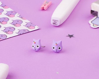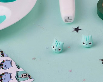 Orange Сat and two stud earrings - summer collection - polymer clay jewelry - hand painted stud earrings - fake plug
