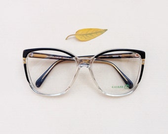 80s black gold frames / Vintage rhinestone Eyeglasses / italian Galileo sunglasses / designer optical eyewear