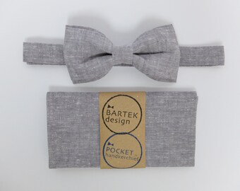 RESERVED for Tammy: Men's Wedding Set Pre Tied Bow Tie and Pocket Handkerchief by BartekDesign ash gray light grey silver linen