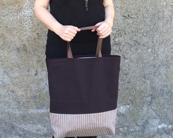 Canvas Travel Bag, Beach Tote Bag, Large Shoulder Bag, Travel Gift, Brown Boho Handbag, Shopping Bag, Striped Market Bag, Accessory Gift