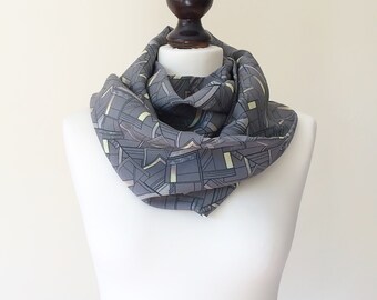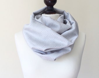 Gray Circle Scarf, Graphic Men Scarf, Boho Printed Foulard, Geometric Loop Scarf, Satin Infinity Scarf, Women Accessory, Christmas Gift