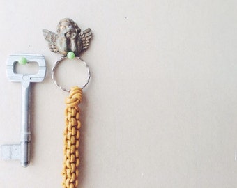 Yellow key chain with split key ring , handmade , leather , wonderful gift for you or for any loved one