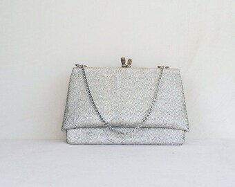 Silver Evening Bag, Small Vintage Handbag, Wedding purse, Silver Purse, Light Grey bridal clutch ,Silver Jewel bag ,OOAK Bridesmaid Bag
