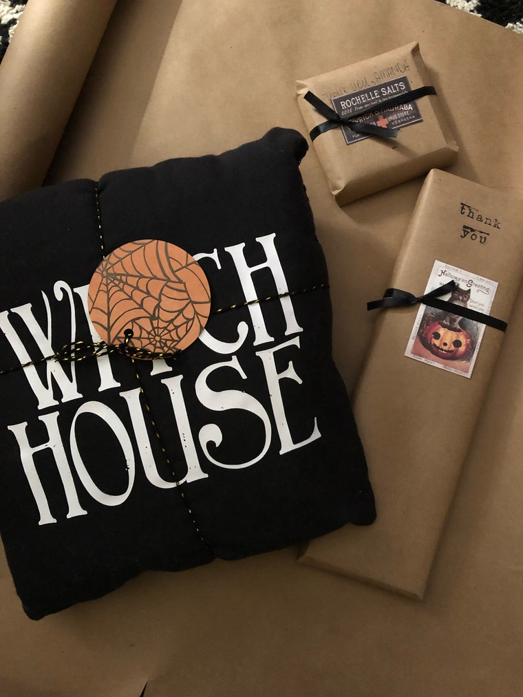 We try to add a little dark holiday spirit to all of our orders. Your item will come wrapped in black kraft paper, adorned with a bow and a bit of seasonal love every time, free of charge. If you order multiple items and needs them wrapped individually, please let me know at the time of purchase and we’ll make it happen.