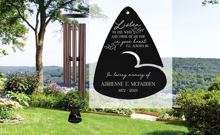 Personalized memorial wind chimes in a variety of sizes, colors and designs. -