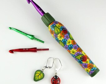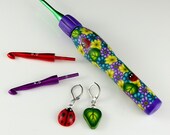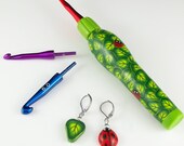 Interchangeable Ergonomic Crochet Hook Set - Green Multi-Floral