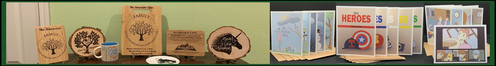 So then I decided, "Why not also build a laser engraver!" They use pretty much the same technologies as CNC (but with a bit less dust flying around). When I finished my laser engraver I made custom Christmas gifts for friends and family. Everyone loved them so much; I kept hearing "You should sell these." and "You should open an Etsy store." So I did.