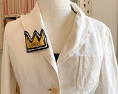 The works I am exhibiting in my shop are a tribute to the American Artist Jean Michel Basquiat. I read and saw about him while I was captured by Andy Warhol and his Factory and the artistic movements of those years, but the first real and overwhelming encounter with the work of J.M. Basquiat takes place during a holiday in London.