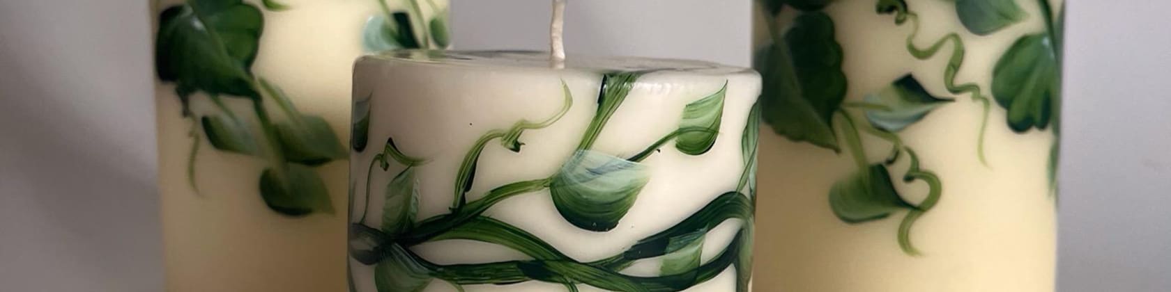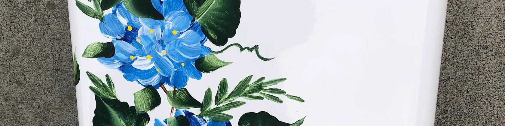 I was a stay at home mom (not really: kids activities, volunteering and cub scout leader). I first began gardening, and helped create gardens on the family farm, then started painting on gourds we grew for a local craft store. I took lessons in One Stroke painting and joined the National Society of Decorative painters, travelling all over the country to studios and conventions to learn from all the best painting instructors. Then I began to sell in more shops in New Jersey and Vermont.