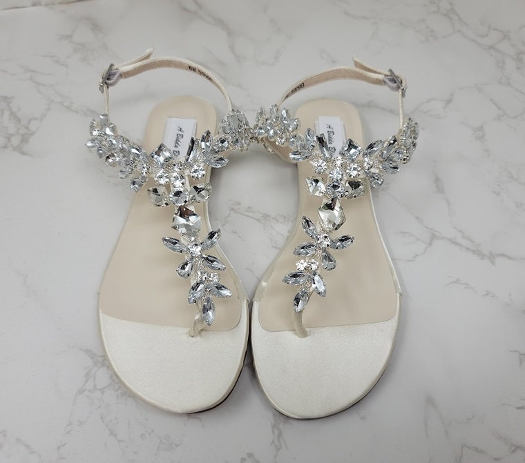 Comfortable dyeable flat sandals with tons of sparkle. Also perfect for a beach wedding! -