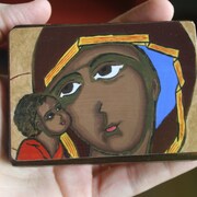 I started with Our Lady of Tenderness, easily my most icon-like painting, to learn and play around with the technique. One thing the book discussed was that icon writers, essentially, re-paint other icons, which was what I did with my first one.