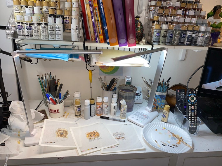 Although I paint many of my needlepoint canvases myself recently demand has increased and I've needed some help painting the canvases. I still design, package and ship everything myself.