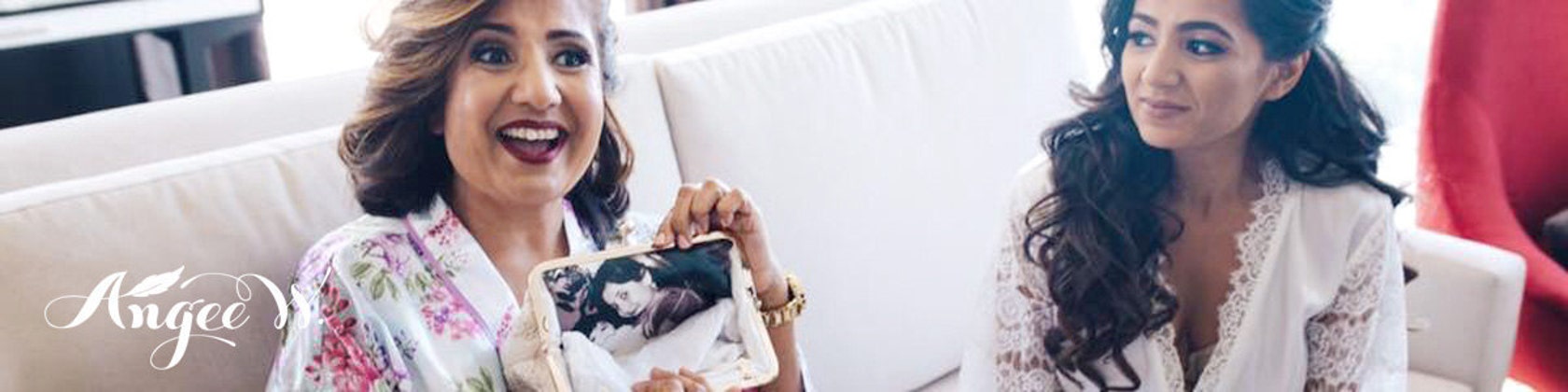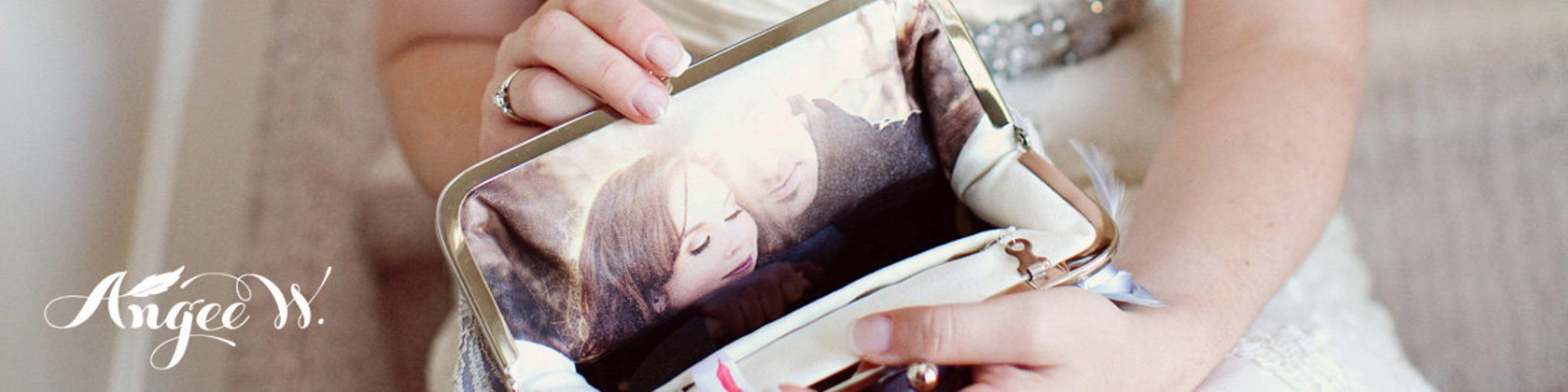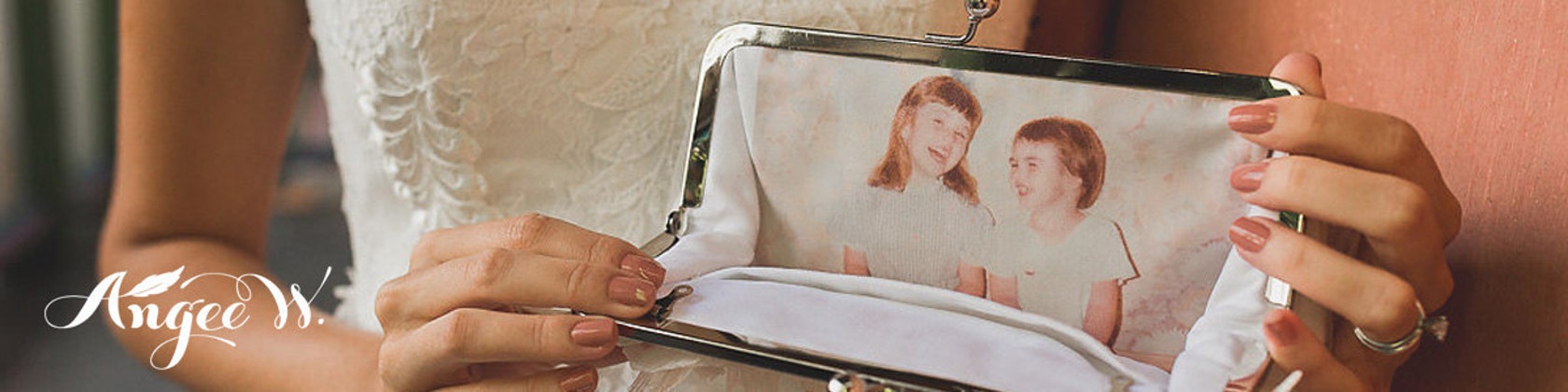 The original makers of photo lined clutch purses, ANGEE W. is famous for personalized clutches made with delicate laces, satins and silks. Our bags are popular wedding and bridal shower presents. Brides, bridesmaids, mothers and mothers-in-law all appreciate receiving such a beautiful gift. A clutch with a personal story in the palm of their hands.