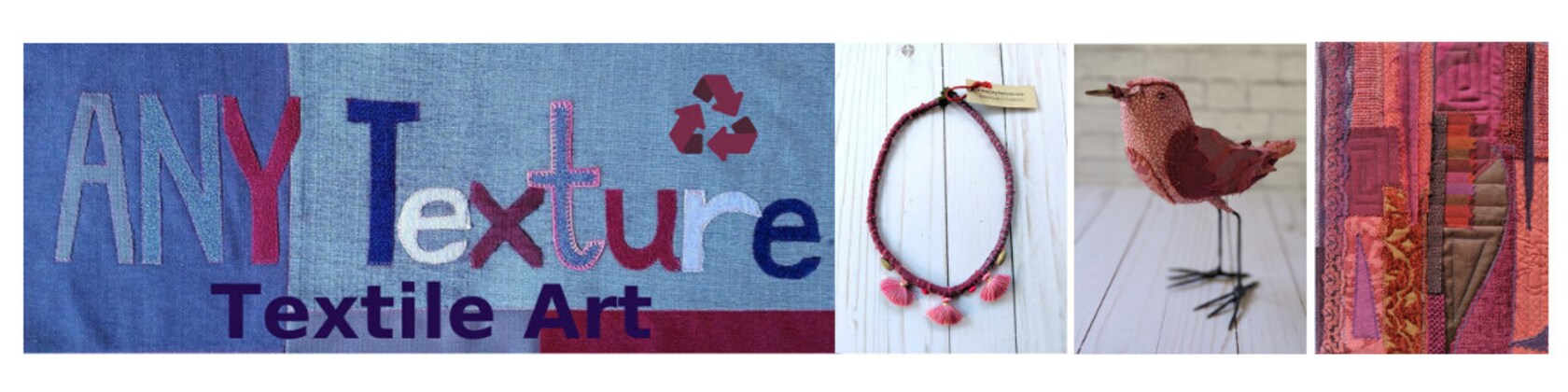 Thank you for buying an ANY Texture item! Your one-of-a-kind purchase was carefully crafted by hand, using mixed-fiber fabrics and other materials.