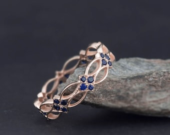 Sapphire Celtic Eternity Ring - Sapphire Ring - Blue Stone ring - Gold Ring - Something blue - eternity band - Victorian - Gothic - Celtic