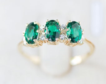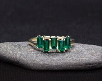 Five baguette Emerald ring, baguette ring, Emerald ring for women, baguette emerald