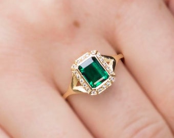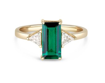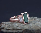 Emerald baguette ring, Emerald and diamond, Emerald and moissanite, art deco, Emerald ring for women, antique, Emerald ring engagement