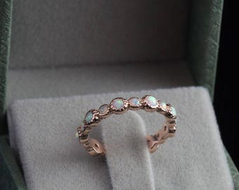 5 out of 5 starsThis Australian blue opal eternity band, set in rose gold, is absolutely stunning! The picture of the ring on Etsy is very nice, thus the reason I purchased the ring. Once you receive the ring and allow it to sparkle in different light, the ring is even more stunning. The flashes of multiple colors says, "WOW!"