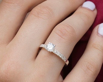 Moissanite engagement ring, Moissanite rings, solitaire engagement ring, solitaire diamond alternative, prong set solitaire, big stone