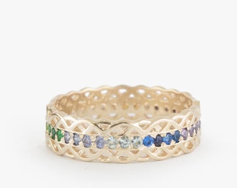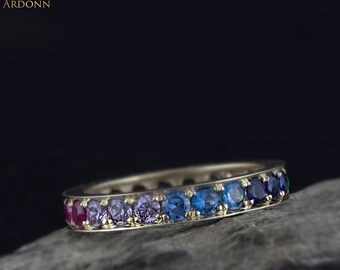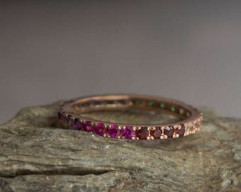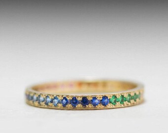 Gold Rainbow gradient Eternity ring - Sapphire - Emerald - ombre ring- Garnet - Blue Topaz - Aquamarine - Amethyst - Tanzanite
