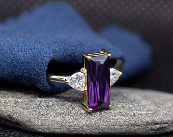 baguette moissanite ring vintage, baguette ring Amethyst , baguette ring solitaire, art deco, ring for women, antique, Amethyst ring