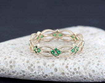 Celtic Ring - Eternity Ring - emerald Ring - Green Stones ring - Gold Ring - infinity ring - texture - pattern -vintage - Gothic