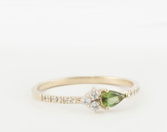 Pear emerald and diamond cluster, Pear cut emerald, Dainty Diamond and emerald ring, may birthstone ring