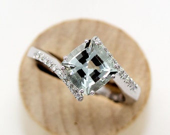 Aquamarine and Diamond engagement ring, Cushion cut, Aquamarine, diamond