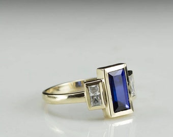 baguette ring vintage, baguette ring Sapphire, baguette ring solitaire, art deco, ring for women, antique, Sapphire ring engagement
