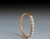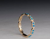 Eternity ring Alternating White opal gold ring - milgrain - antique - gold eternity band - Opal eternity rings