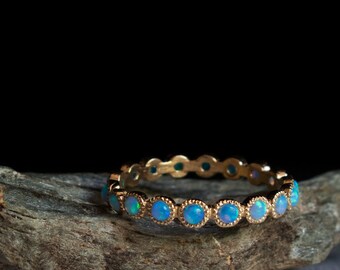 Eternity Opal Gold ring - Blue stone ring- october birthstone