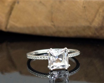 White topaz and moissanite ring, Solitaire white topaz, alternative engagement ring, multi-gemstone ring
