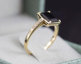 baguette ring vintage, baguette ring Emerald, baguette ring solitaire, art deco, Emerald ring for women, antique, Emerald ring engagement