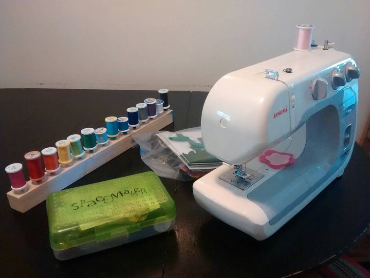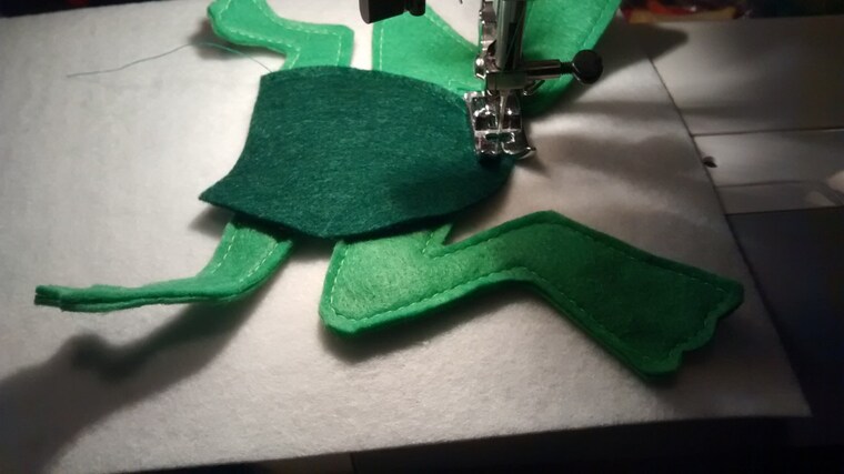 Sewing a frog down for a quiet book page -