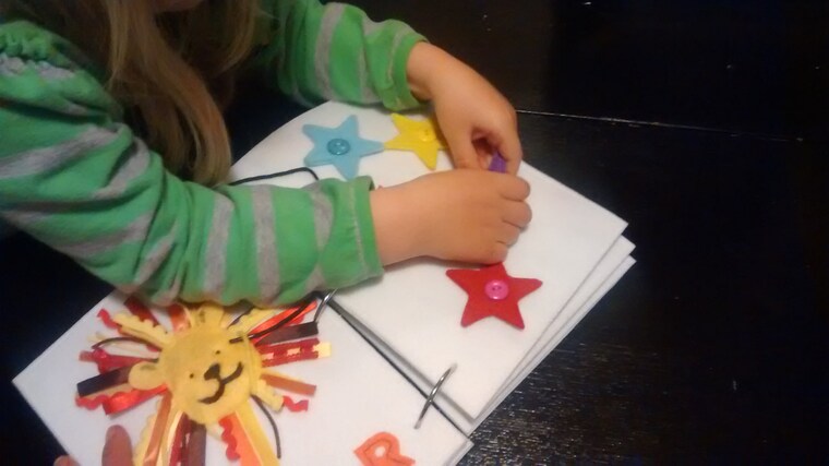 Cutting out pieces for a quiet book -