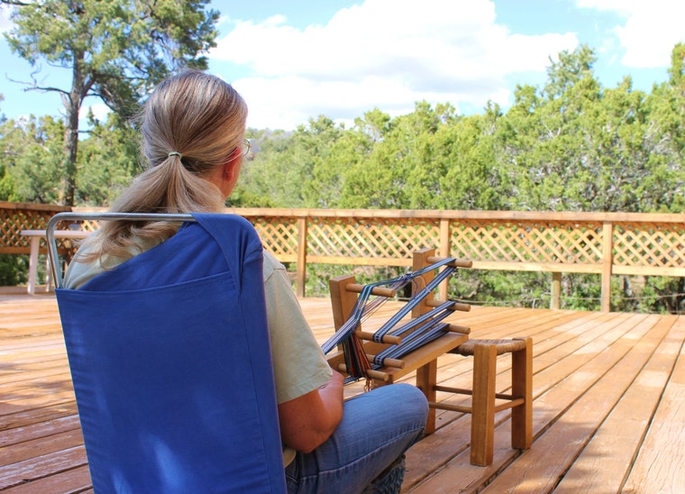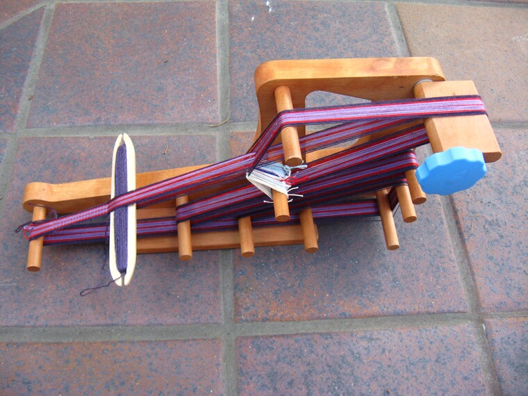 My tiniest loom, an Ashford Inklette set up to weave 1/2" silk ribbon.