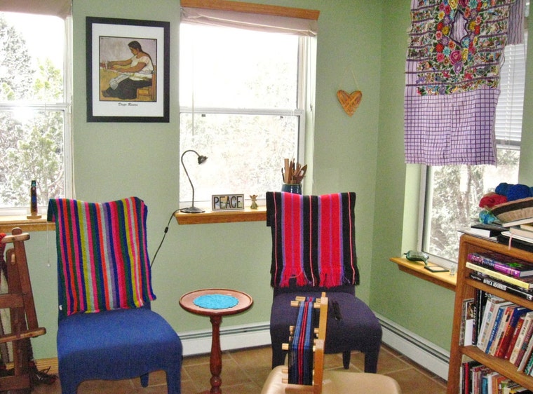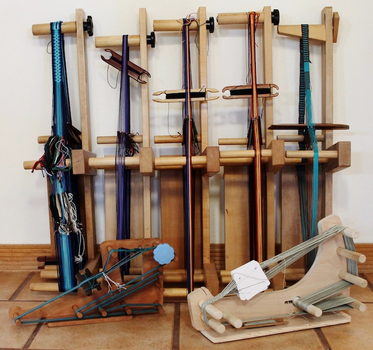 I have many inkle looms. In this photo 5 of them are busy with projects. -